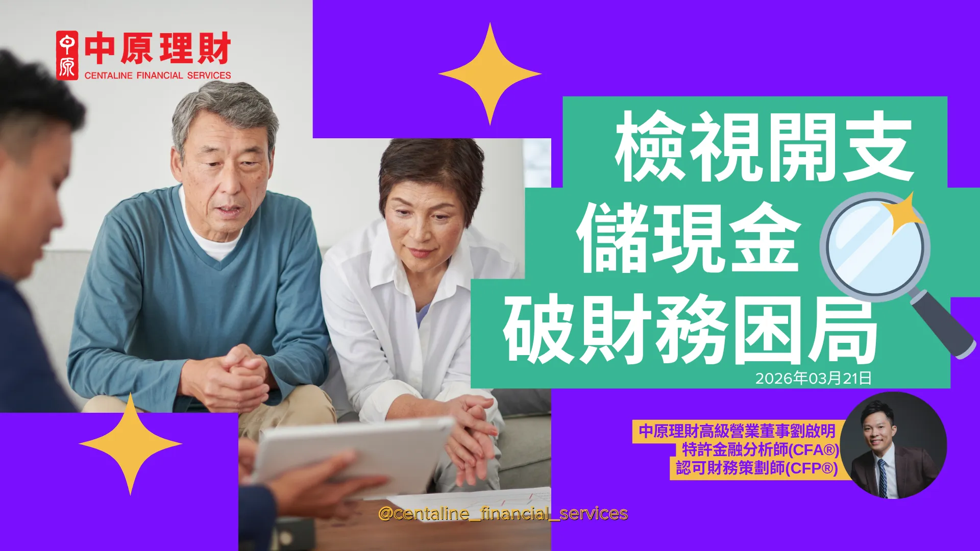 已婚,育有一兒及一女,典型的香港中產家庭。由於服務機構規定60歲必須退休,現只剩餘15年時間作退休安排。故此來信希望得到一點點的啟示,究竟可以如何部署?