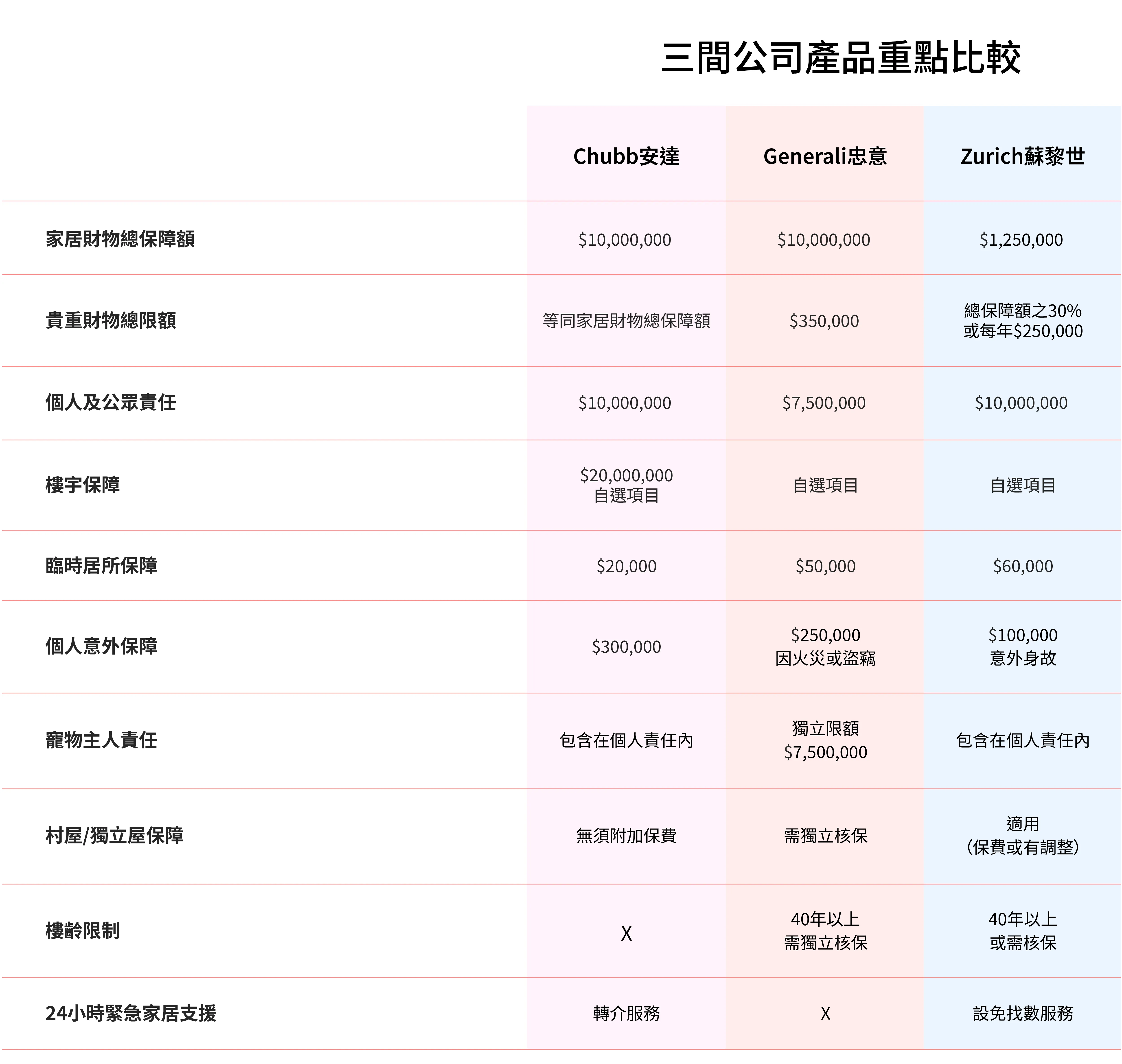 • 保障範圍特點: 市場上部分計劃提供高額財物保障,有些則包含追討欠租法律費用 ,以及24小時緊急維修服務 。